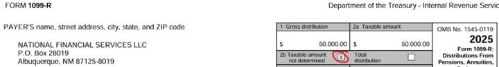 For example, if your RMD was $50,000, but you gave $25,000 of it directly to charity as a QCD, your 1099-R would still look like this: