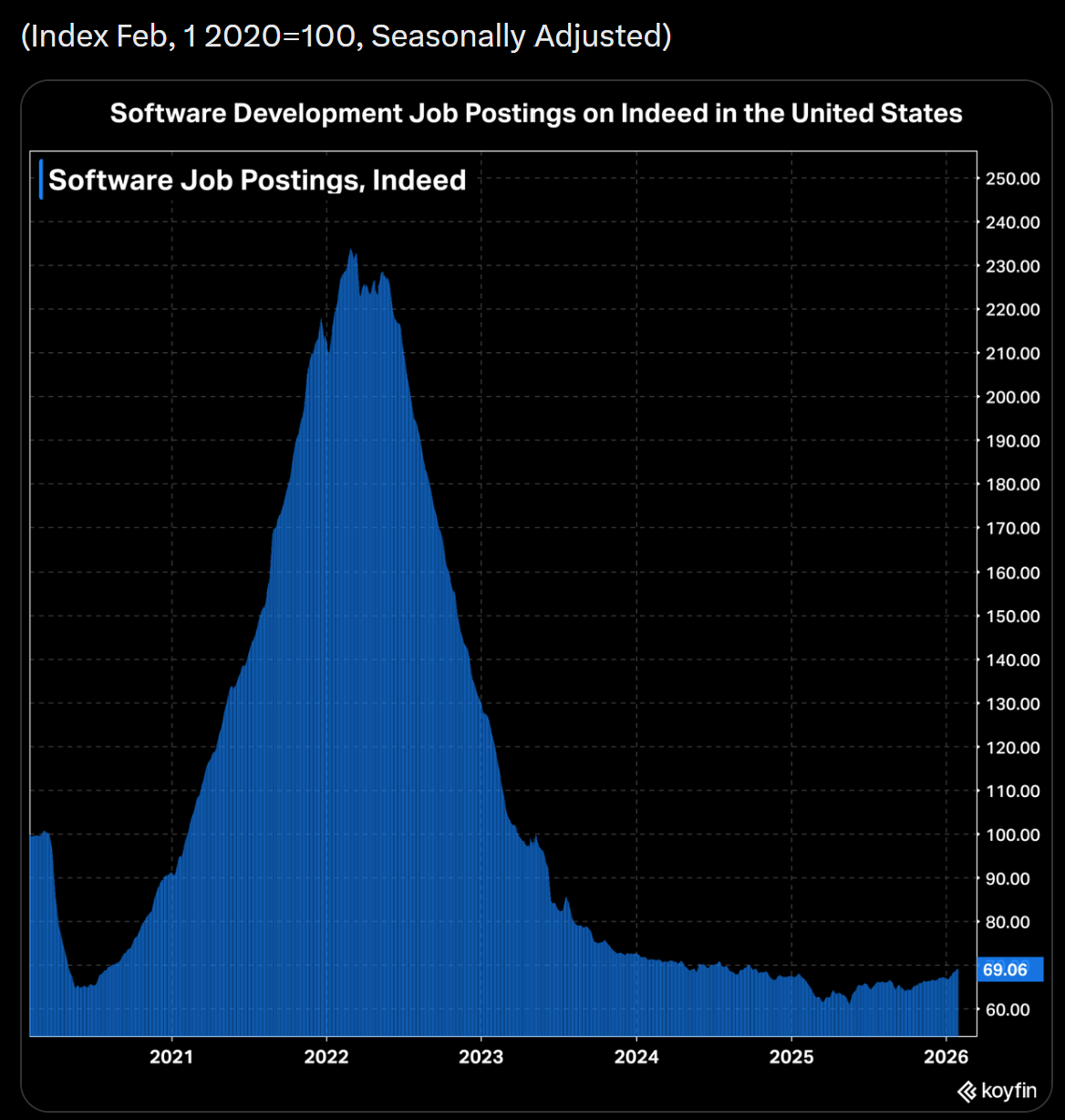AI coding hasn’t only shaken up the stock market- check out the job openings for software development over the past 6 years: